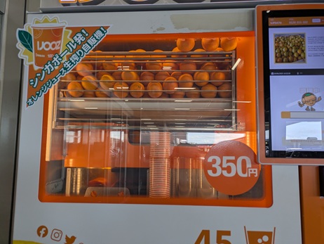 コーヒーは飲んでいたんだけど、それでもふらふらしていたんで気になったんでしょうね。私がオレンジ好きなのを知っていて、駐車場の自販機が並んでいるところに生絞りのオレンジジュースが飲める自販機を見つけて「飲んだ方がいいよ」って。